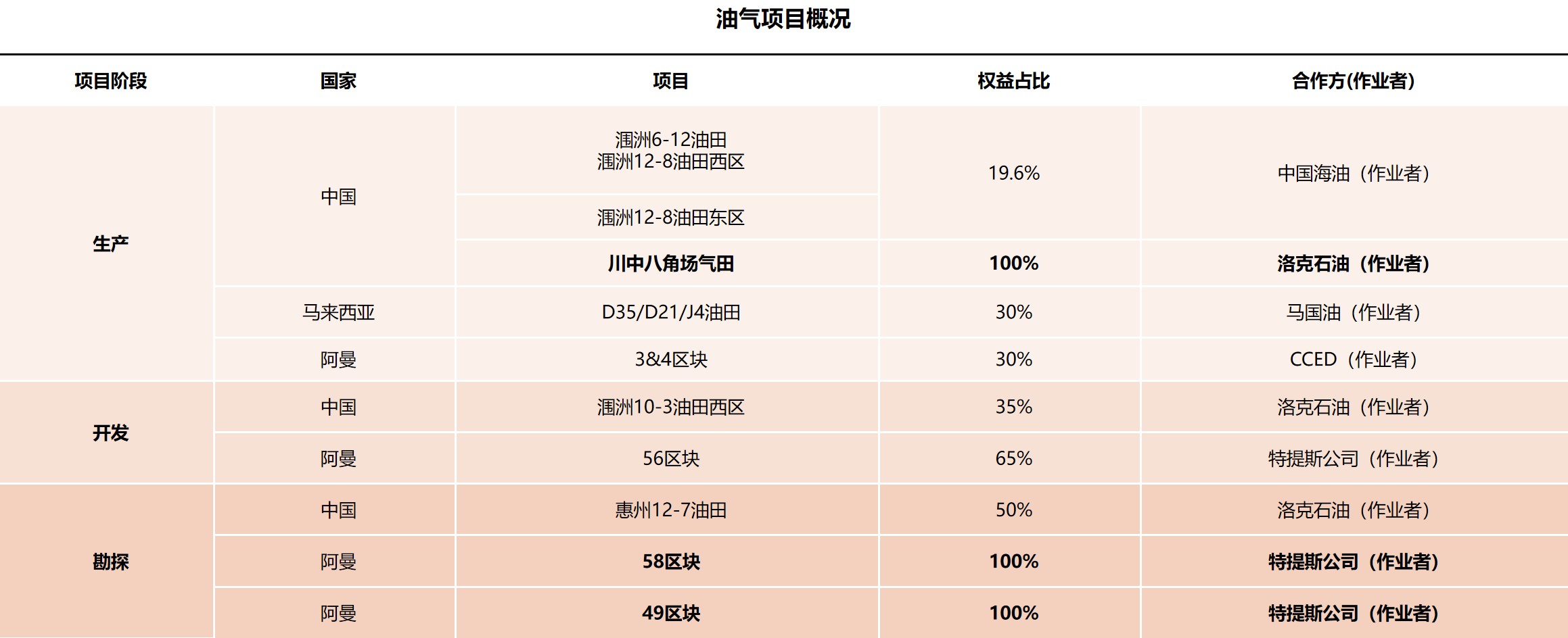 目前主要油氣項(xiàng)目位于中國(guó)四川、南海西部北部灣、南海東部珠江口、馬來(lái)西亞以及阿曼等地,目前日均油氣產(chǎn)量35000桶當(dāng)量。